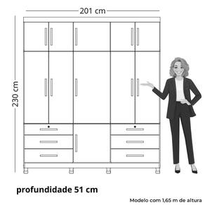Características: 6 Gavetas laterais com corrediças telescópicas Cabideiro de alumínio Pés com regulagem de altura Puxadores de MDF revestidos Espelho incluso 1,00 x 0,34mm 11 Portas Estrutura MDP