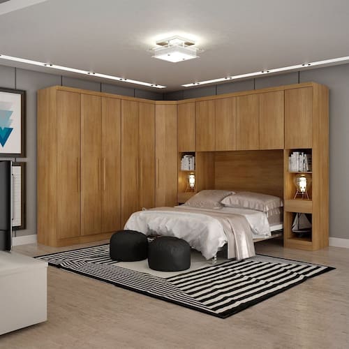 "Guarda roupa casal modulado 100% mdf, puxadores com acabamento amadeirado, dobradiças de pressão 35cm, 6 gavetas internas com puxadores e corrediças telescópicas, espaço para longo, cabideiros e calceiros em alumínio. Transforme o seu quarto com o guarda-roupa modulado perfeito para quem busca organização sem abrir mao do design moderno e sofisticado. Ideal para casais que querem otimizar espaço com estilo de móveis planejados." Acabamento da Prateleira: Pintura Texturizada UV Escala de Brilho da Prateleira: Fosco Possui Cabideiros: Sim Acabamento da Gaveta: Pintura Texturizada UV Escala de Brilho da Gaveta: Fosco Material do Puxador da Gaveta: ABS Possui Organizador de Gaveta: Não Acabamento da Porta: Pintura Texturizada UV Escala de Brilho da Porta: Semi-Fosco Material do Puxador da Porta: MDF Ambiente Principal: Quarto codigo_ean: 7900288238894 Complexidade da Montagem: Alta: deve ser montado por um montador especializado Cor: Cumaru Cor da Porta: Cinamomo Cor do Produto: Cumaru Cor do Puxador: Marrom Cor Interna: Cumaru Escala de Brilho: Fosco Espessura da Estrutura (mm): 12 mm Espessura das Portas (mm): 15 mm Espessura das Prateleiras (mm): 15 mm Espessura do Fundo (mm): 3 mm Espessura do Fundo das Gavetas (mm): 3 mm Gaveta com Chave: Não Itens Inclusos: 1 Guarda-Roupa, Kit Ferragens e Manual de Montagem Linha ou Coleção: Cairo Manual de Montagem e Instalação: https://product-hub-prd.madeiramadeira.com.br/558905620/documents/c82db907-aca9-4dbb-aff7-a87563dc20672944712646117479198620089.pdf Marca: Novo Horizonte Material da Gaveta: MDF Material da Porta: MDF Material da Prateleira: MDF Material Principal: MDF modular: Sim Montagem Flex: Não Necessita Montagem: Sim Nicho com Cabideiro: Sim O Módulo Pode ser utilizado individualmente: Sim Origem do Produto: Nacional Peso: 470 kg Peso Máximo por Gaveta: 5 kg Peso Máximo por Prateleira: 10 kg Possui Calceiros: 02 Possui Espelho: Não Possui Pés: Não Possui Portas: Sim Possui Prateleiras: Sim Produto Montado: Sim Quantidade de Cabideiros: 03 Cabideiros Quantidade de Gavetas: 08 Gavetas Quantidade de Prateleiras: 15 Prateleiras Recomendações de Uso, Manutenção e Limpeza: Limpar com flanela ou pano macio seco, não utilizar produtos abrasivos, desengordurantes, álcool ou solventes. Não expor produto diretamente à luz solar e à umidade. Sistema de Montagem: Parafusos, Cavilhas e outros Tipo de Corrediça da Gaveta: Metálica Telescópica Tipo de Dobradiça/Corrediça da Porta: Metálica Tipo de Gaveta: Interna Tipo de Guarda-Roupa: Casal Tipo de Puxador da Gaveta: Externo Tipo de Puxador da Porta: Externo