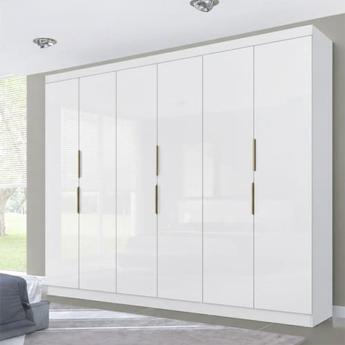 O(a) Guarda-Roupa Casal 12k 6 Portas 4 Gavetas Branco - Maxel é produzido em MDP na escala de brilho Brilhante, e possui um grau de dificuldade de montagem: Médio.