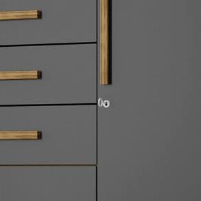 Diferenciais: Possui chaves nas portas laterais, Pés Modernos, Corrediças metálicas, Puxador em MDF revestido.