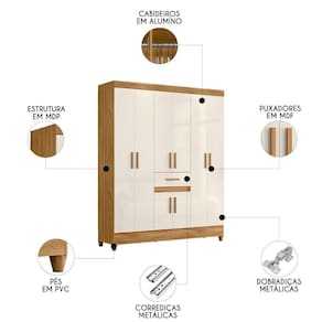 Com uma gaveta espaçosa, você guarda tudo com facilidade, desde roupas íntimas até acessórios. As corrediças, dobradiças e cabideiro em alumínio garantem resistência e durabilidade, sem abrir mão da leveza no uso.