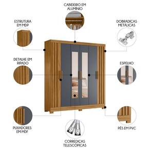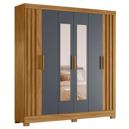 Unindo elegância e praticidade, o Guarda Roupa Casal 195cm Espelho Ripado Arlon M07 Freijó/Cinza, da Mpozenato, é a escolha indispensável para o seu quarto!