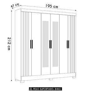 O Roupeiro possui seis portas com puxadores em MDF e dobradiças metálicas, em 2 delas, os detalhes ripados adicionam sofisticação e modernidade ao design do produto. Sua excelente repartição conta com quatro prateleiras para acomodar seus itens de maneira prática. Possui três cabideiros e um calceiro em alumínio, ideais para pendurar roupas de forma eficiente de modo que elas fiquem sempre bem organizadas e sem amassar. Além de duas gavetas com corrediças telescópicas para acessórios, roupas dobradas, dentre outros objetos, e uma área adicional para guardar calçados. Os Espelhos presentes nas portas centrais garantem utilidade e estilo, servindo para você conferir o visual antes de sair e ainda criam uma sensação de amplitude no ambiente. Os pés em PVC facilitam a limpeza, mantendo tudo sempre impecável. Com estrutura em MDP de 12/15mm e acabamento em pintura UV, esse Guarda Roupa Casal une beleza, resistência e organização, sendo a escolha ideal para otimizar e agregar funcionalidade ao seu Quarto. Não perca a oportunidade de transformar seu espaço com este móvel completo e versátil.