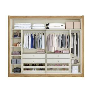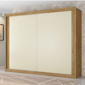 ROUPEIRO CRETA 100% MDF COM 2 PORTAS Material: 100% MDF, que garante qualidade e durabilidade; Modernidade. Interno na cor off White com Costas parafusadas. Avançado sistema de rodízios de portas de correr que evita o descarrilamento e proporciona um deslizamento suave e silencioso; Divisão interna bem distribuída, com nichos e prateleiras. Acabamento da Prateleira: Pintura Texturizada UV Escala de Brilho da Prateleira: Semi-Brilho Possui Cabideiros: 03 Acabamento da Gaveta: Pintura Texturizada UV Escala de Brilho da Gaveta: Semi-Brilho Material do Puxador da Gaveta: Plástico Possui Organizador de Gaveta: Não Acabamento da Porta: Pintura Texturizada UV Escala de Brilho da Porta: Semi-Brilho Material do Puxador da Porta: MDF Ambiente Principal: Quarto Complexidade da Montagem: Alta: deve ser montado por um montador especializado Cor: Amêndoa/Off White Cor do Produto: Amêndoa/Off White Cor Flex: sim Cor Interna: Off White Escala de Brilho: Semi-Brilho Gaveta com Chave: Não Itens Inclusos: 1 Guarda Roupa, Kit Ferragens e Manual de Montagem Manual de Montagem e Instalação: https://cdn2.madeiramadeira.com.br/atributo/moveis-europa/922588-esquema-de-montagem-roupeiro-creta.pdf Material da Gaveta: MDF Material da Porta: MDF Material da Prateleira: MDF Material Principal: MDF Montagem Flex: Sim Necessita Montagem: Sim Origem do Produto: Nacional Peso: 266,5 kg Peso Máximo por Gaveta: 5 kg Peso Máximo por Prateleira: 3 kg Possui Calceiros: Não Possui Espaço para Vestidos Longos: Sim Possui Espelho: Não Possui Espelho Interno: Não Possui Ganchos: Não Possui iluminação: Não Possui Painel de TV: Não Possui Pés: Não Possui Portas: 02 Possui Prateleiras: 06 Possui Sapateira: Sim Recomendações de Uso, Manutenção e Limpeza: Utilizar pano seco Sistema de Montagem: Parafuso, Cavilha e Minifix Tipo de Corrediça da Gaveta: Metálica Telescópica Tipo de Dobradiça/Corrediça da Porta: Alumínio Tipo de Gaveta: Interna Tipo de Guarda-Roupa: Casal Tipo de Puxador da Gaveta: Externo Tipo de Puxador da Porta: Embutido