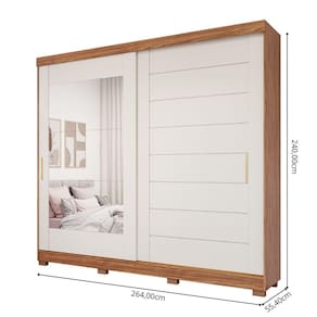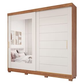 Uma das portas possui 3 espelhos, adicionando praticidade e estilo ao seu quarto, enquanto a outra porta apresenta um detalhe em baixo relevo e molduras de 25 mm, elevando o visual do guarda-roupa para outro nível.