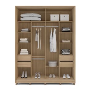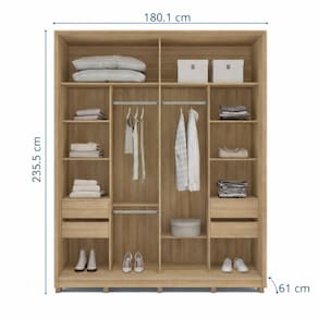 O Guarda-Roupa Casal Barcelona 2 Portas de Correr com Espelho, na elegante combinação Off White com Carvalho, é a solução ideal para quem busca praticidade sem abrir mão de sofisticação. Produzido em 100% MDF, garante maior resistência, estabilidade e excelente padrão de acabamento. Com 180,1 cm de largura, 235,5 cm de altura e 61 cm de profundidade, oferece ótimo espaço interno e melhor aproveitamento do ambiente, sendo perfeito para quartos que pedem funcionalidade. As portas de correr facilitam a circulação, enquanto os puxadores embutidos reforçam o visual moderno. Possui gavetas com corrediças telescópicas de extração total, que proporcionam abertura suave e acesso completo, além de dobradiças com amortecimento, que reduzem impactos e aumentam a durabilidade. O acabamento em pintura U Acabamento da Prateleira: Pintura UV Escala de Brilho da Prateleira: Semi-Brilho Possui Cabideiros: Sim Acabamento da Gaveta: Pintura UV Escala de Brilho da Gaveta: Semi-Brilho Possui Organizador de Gaveta: Não Acabamento da Porta: Pintura UV Escala de Brilho da Porta: Semi-Brilho Altura dos Pés: 7 cm Altura Máxima dos Pés: 7.0000 Ambiente Principal: Quarto codigo_ean: 7900288318374 Complexidade da Montagem: Média: pode ser montado por mais de uma pessoa e/ou necessite de maior conhecimento para montagem Cor: Off White/Carvalho Cor do Produto: Off White/Carvalho Cor Interna: Carvalho Escala de Brilho: Semi-Brilho Espessura da Estrutura (mm): 15 mm Espessura das Portas (mm): 15 mm Espessura das Prateleiras (mm): 15 mm Espessura do Fundo (mm): 3 mm Espessura do Fundo das Gavetas (mm): 15 mm Itens Inclusos: 1 Guarda-Roupas, Kit de Ferragens, Manual de Montagem e Termo de Garantia Linha ou Coleção: Barcelona Manual de Montagem e Instalação: https://product-hub-prd.madeiramadeira.com.br/521362844/documents/17911038-afc7-4c04-a465-fa6545fbbf373367747622417694493277759.pdf Marca: Politorno Material da Gaveta: MDF Material da Porta: MDF Material da Prateleira: MDF Material dos Pés: Plástico Material Principal: MDF modular: Não Necessita Montagem: Sim Origem do Produto: Nacional Peso: 136,79 kg Peso Máximo por Gaveta: 5 kg Peso Máximo por Prateleira: 5 kg Possui Calceiros: 01 Possui Espelho: Não Possui Pés: 10 Possui Portas: Sim Possui Prateleiras: Sim Produto Montado: Sim Quantidade de Cabideiros: 02 Cabideiros Quantidade de Gavetas: 04 Gavetas Quantidade de Prateleiras: 06 Prateleiras Recomendações de Uso, Manutenção e Limpeza: Utilize um pano macio umedecido com água e sabão neutro, seguido de pano seco. Não utilize produtos químicos ou abrasivos para limpeza, pois estes danificam o revestimento do móvel. Sistema de Montagem: Cavilha, Parafuso, Minifix e prego. Tipo de Corrediça da Gaveta: Metálica Telescópica Tipo de Dobradiça/Corrediça da Porta: Alumínio Tipo de Gaveta: Interna Tipo de Guarda-Roupa: Casal Tipo de Puxador da Gaveta: Não Possui Tipo de Puxador da Porta: Embutido Marca: Não Informado