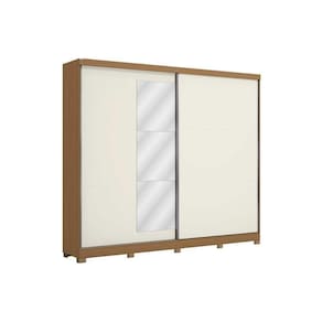 Guarda Roupa Casal 2 Portas De Correr (1 C/ Espelho) E 4 Gavetas C/ Pés Cb01t583 Canela/off White - Kappesberg