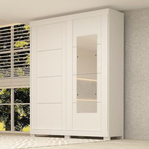 Itens Inclusos: 1 Guarda Roupa com Espelho, Kit Ferragens e Manual de Montagem
