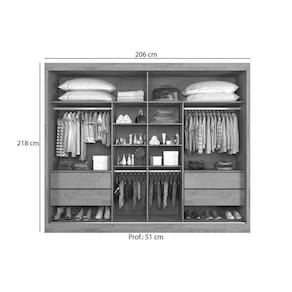 Dimensões(Cm): Comprimento(Profundidade): 51cm x Largura: 206cm x Altura: 218cm