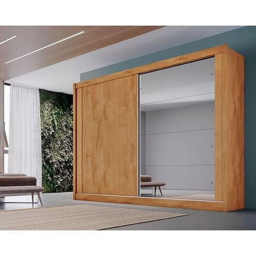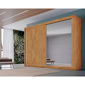 Guarda Roupa Casal 2 Portas De Correr E 4 Gavetas C/ Espelho Creta Peroba - Europa