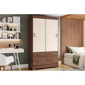 Material dos Cabideiros - Cabideiro de Madeira Quantidade de Portas - 2 Portas de Correr Tipo de Corrediça - c/ Corrediças Metálicas Quantidade de Gavetas - 4 Gavetas Tipo dos Pés - ABS/PVC - Pés Opcionais Quantidade de Prateleiras - 2