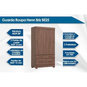 Guarda Roupa Solteiro 2 Portas de Correr e 4 Gavetas c/ Pés Briz BE25 Castanho/Castanho ou Off White - Henn Marca: Henn