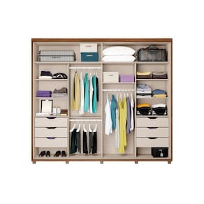 Material de Estrutura - Diferença MDP x MDF - MDF/MDP Tipo de Pintura - Ultravioleta Tipo de Acabamento da Pintura - Semi Brilho Tipo de Acabamento - Acabamento Interno Branco - Acabamento Interno em Linho Tipo de Moldura do Guarda Roupa - Moldura Robusta com Encabeçamento no Topo Diferenciais Guarda Roupas - Sapateira - Maleiro - Divisão Ele/Ela
