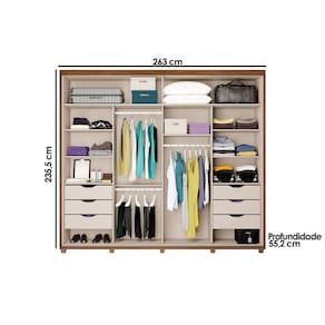 Dimensões(Cm): Comnto(Profundidade): 55cm x Largura: 237cm x Altura: 235,5cm