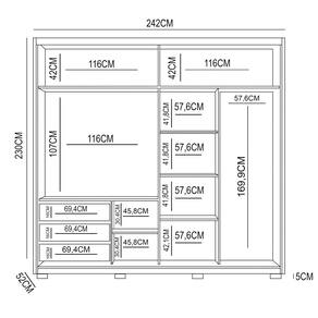 Dimensões dos Produtos Largura: 242 cm. Altura: 230 cm. Profundidade: 52 cm. Peso: 163 kg.
