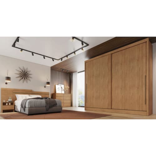 Guarda Roupa Casal 2 Portas de Correr Geom - Móveis Novo Horizonte - Cumaru - Marrom