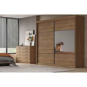 Tipo de Cabideiro - Aéreo Material dos Cabideiros - Cabideira Metálico Tipo de Porta do Guarda-Roupa - Portas de Correr Material das Portas - Portas em MDF Material do trilho da porta de correr - Trilho Metálico Quantidade de Portas - 2 Portas de Correr Quantidade de Portas com Espelho - 1 Porta com Espelho Tipo de Espelho - Espelho Externo Quantidade de Espelhos - 1 Espelho Material das Gavetas - Gavetas em MDF Tipo de Corrediça - c/ Corrediças Telescópicas Quantidade de Gavetas - 6 Gavetas Material das Prateleiras - Prateleiras em MDF Quantidade de Prateleiras - 2 Quantidade de Nichos - 10 Nichos