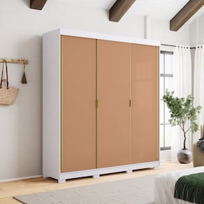 Guarda Roupa Casal 200cm 3 Portas Porto Branco/Camarim - Vila Rica