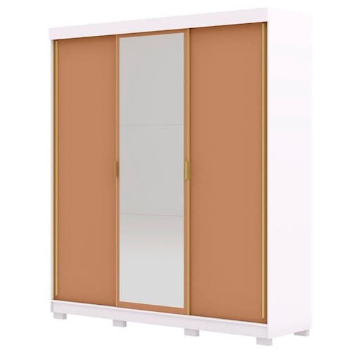 Guarda Roupa Casal 200cm Com Espelho Duke Branco/Camarim V02 - Mpozenato