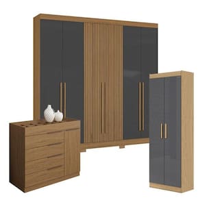 Guarda Roupa Casal 2030230 com Multiuso 2000191 Atacama Grafite e Cômoda Sevilha Atacama - Aramóveis