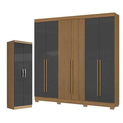 Guarda Roupa Casal 2030230 e Armário Multiuso New 2000192 Atacama Grafite - Aramóveis