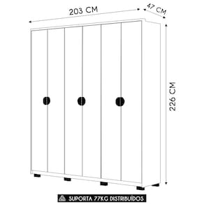 O Guarda-Roupa é a solução ideal para quem precisa de funcionalidade e estilo. São 6 portas dobradiças metálicas e uma estrutura 100% em MDF, garante resistência e durabilidade, sendo perfeito para o uso diário.