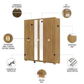 Guarda Roupa Casal 203cm Com Espelho Noronha Nature - Vila Rica