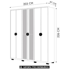 O Guarda-Roupa é a solução perfeita para quem busca praticidade e sofisticação em um único móvel. Com seis portas, sendo duas delas com espelho e dobradiças metálicas, sua estrutura 100% em MDF garante alta resistência e durabilidade, atendendo às necessidades do uso diário com qualidade superior.