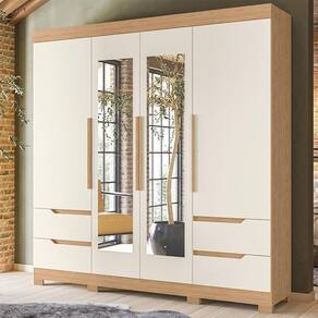 Com seu design elegante e funcional, ele oferece uma solução completa de armazenamento para suas roupas e pertences. As duas gavetas espaçosas, equipadas com corrediças telescópicas, proporcionam um acesso fácil e suave aos seus itens pessoais. Já os puxadores de MDF revestidos adicionam um toque moderno ao guarda roupa, enquanto os pés inclusos garantem estabilidade e durabilidade. Além disso, esse Guarda Roupa Quatro Portas possui dois cabideiros em alumínio resistente, permitindo que você disponha suas roupas de forma prática e organizada. Com o Guarda Roupa De Casal, você terá um móvel versátil e funcional que combina perfeitamente com qualquer estilo de decoração. Para completar, o jogo de espelhos é perfeito para você conferir seu visual antes de sair, além de contribuir para a sensação de profundidade no ambiente