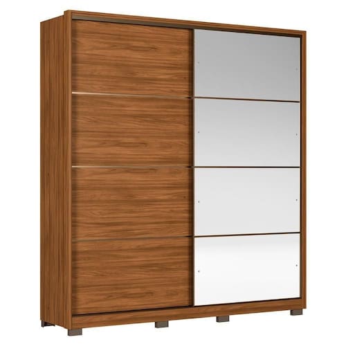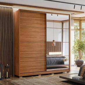 Seu design com portas deslizantes otimiza o espaço, facilitando o acesso, especialmente em ambientes compactos. Internamente, oferece cabideiros espaçosos para roupas longas, amplas gavetas para peças íntimas e acessórios, além de um nicho perfeito para armazenar peças dobradas ou toalhas. O Guarda Roupa Casal conta ainda com espaço dedicado para sapatos e um maleiro para roupas de cama. O espelho na porta amplia visualmente o ambiente, agregando funcionalidade e sofisticação ao móvel. Fabricado 100% em MDP, o Guarda Roupa Solteiro também conta com pés que protegem contra umidade e facilitam a limpeza. Seu design com espelho na porta se adapta facilmente a diferentes estilos de decoração, tornando o ambiente mais organizado e elegante.