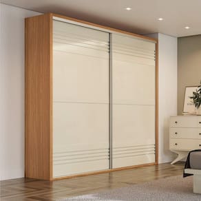 quarto de casal, pois as portas com abertura deslizante não atrapalham a circulação do ambiente. Além disso, possui um excelente compartimento interno com várias prateleiras, 2 gavetas e cabideiros, itens perfeitos para manter tudo no lugar e facilitar a visualização das peças.