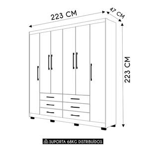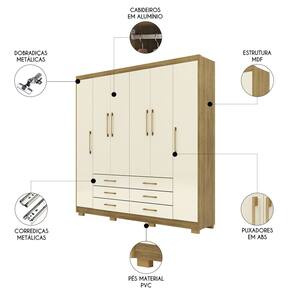 Guarda Roupa Casal 223cm 6 Portas Canadá Nature/Champanhe - Vila Rica