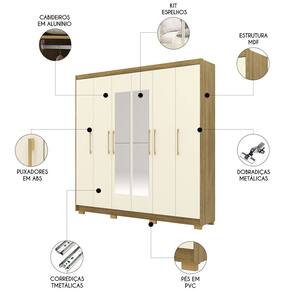 Guarda Roupa Casal 223cm Com Espelho Pako Nature/Champanhe V02 - Mpozenato