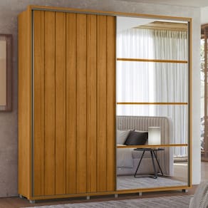 Uma das portas conta com quatro espelhos, para auxiliar na hora de conferir o visual, perfeito para quem busca aliar funcionalidade e sofisticação, este Guarda Roupa transforma o ambiente com presença marcante e soluções inteligentes.