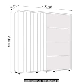 Dimensões do Produto Largura: 230 cm. Altura: 240 cm. Profundidade: 61 cm. Peso: 236,9 Kg.