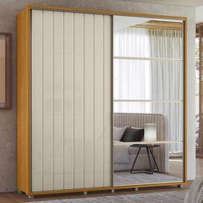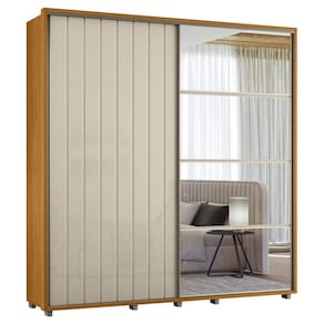 Uma das portas conta com quatro espelhos, para auxiliar na hora de conferir o visual, perfeito para quem busca aliar funcionalidade e sofisticação, este Guarda Roupa transforma o ambiente com presença marcante e soluções inteligentes.