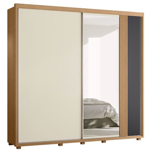 Este Guarda Roupa Casal 240cm com Espelho Aline Flex A02 Off/Titanium, da Mpozenato combina estilo moderno e praticidade, oferecendo uma solução completa para a organização do seu Quarto.