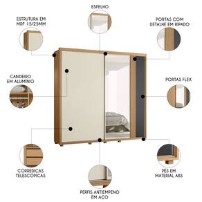 Com duas portas deslizantes de cor flex, sendo uma delas com espelho, tem um design inovador permite um deslizamento suave e sem esforço, proporcionando fácil acesso ao interior. As quatro gavetas, equipadas com corrediças telescópicas, oferecem maior durabilidade e facilidade de uso, permitindo o armazenamento de roupas e acessórios de forma eficiente. Os puxadores perfil em alumínio agregam um toque sofisticado, complementando o visual clean e contemporâneo do móvel. A estrutura do Guarda Roupa 2 Portas é reforçada por perfis antiempeno em aço, garantindo robustez e resistência, enquanto o aplique de MDF revestido oferece um acabamento de alta qualidade. As prateleiras internas proporcionam um amplo espaço de organização. Além disso, os dois cabideiros de alumínio oferecem um suporte ideal para pendurar suas roupas com praticidade. Com moldura de 25mm, o Guarda Roupa oferece estabilidade e resistência, tornando-se uma peça durável para o seu ambiente. Os pés inclusos não só asseguram maior durabilidade, como também facilitam a limpeza, mantendo o móvel elevado e dando um toque de leveza ao design.