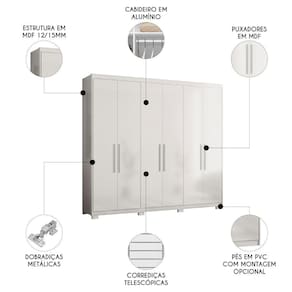 O Guarda Roupa Casal 241cm 6 Portas Vanny D02 Branco, da Mpozenato é uma escolha elegante e funcional para o Quarto do Casal.
