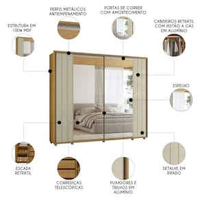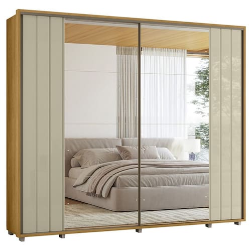 Guarda Roupa Casal 278cm 2 Portas 8 Espelhos Mya Opala/Cumaru Z10 - Mpozenato