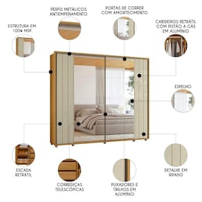 Guarda Roupa Casal 278cm 2 Portas 8 Espelhos Mya Opala/Cumaru Z10 - Mpozenato
