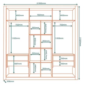 Materiais: Estrutura 100% MDF (chapa de 12mm), Corrediças Telescópicas, Cabideiro em Alumínio, Trilho inferior em Alumínio, Trilho superior usinado e Puxadores de Plástico.