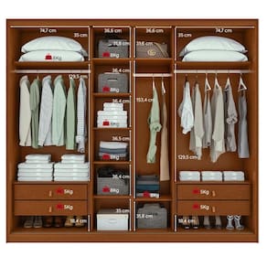 Amplo espaço interno com 15 nichos Ideal para organizar roupas, calçados, acessórios e muito mais.