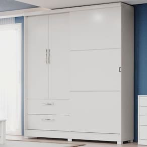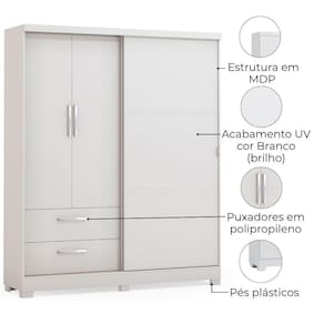 Guarda-roupa Casal E530 para quem busca funcionalidade e design moderno em um só móvel. Estrutura em MDP (12 mm) e acabamento em pintura UV, conta com 6 portas, 3 cabideiros metálicos, 3 prateleiras e 2 gavetas internas com corrediças metálicas. Este produto será entregue em 03 volumes.