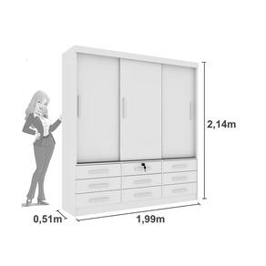 Guarda Roupa Casal 3 Portas 9 Gavetas - Chicago-Neve - Tcil Móveis