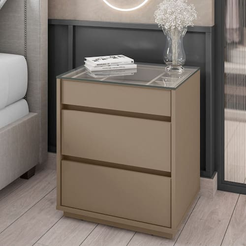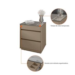 Características Técnicas Estrutura: MDF Dobradiça de 35mm Puxadores com haste um alumínio Corrediças telescópicas para abertura total das gavetas 3 Portas com espelho 5 Gavetas