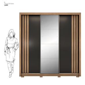 Com três portas e duas gavetas espaçosas, oferece amplo armazenamento para roupas, acessórios e objetos pessoais.