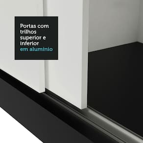 Características principais: Conta com portas de correr que deslizam suavemente, graças aos trilhos superiores e inferiores em alumínio. Isso garante um funcionamento tranquilo e sem esforço. Uma das portas conta com espelhos, que são úteis no dia a dia e deixam o móvel ainda mais elegante.
