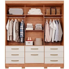 Espaço para maior organização! Com 3 portas e 7 gavetas, o roupeiro Panan, possui divisões internas para você separar seus pertences da forma que preferir. Conta ainda, com cabideiro e espaço para seus calçados.