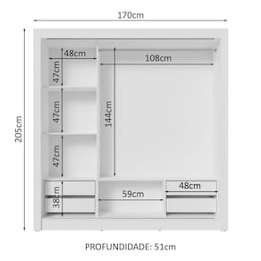 Medidas totais: 205 cm de altura x 170 cm de largura x 51 cm de profundidade.